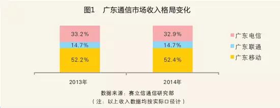 主页(http://www.pttcn.net):2015广东通信市场竞争新趋势 2014年盘点:呈现六大新特征 2014年已在平静中落下帷幕。回顾这一年的广东移动通信市场竞争情况,却只能用“不平静”来形容。许多新形势的出现使运营商迎来前所未有的挑战,如电信业的营改增推行、国资委关于运营商营销费用压降的要求等;2014年竞争焦点的改变也让运营商体会到“几家欢喜几家愁”的滋味,如4G全面商用后广东移动重拾往日威风,颇有“王者归来”的气势,而广东联通、广东电信发展势头同时受到打击,压力渐显;这一年通信行业竞争主体多元化,各行各业借“虚拟运营商”的名号进军通信市场,虽然不见得对市场造成实际冲击,但对运营商着实带来不小影响。归纳起来,2014年广东通信市场竞争大致呈现六大特征。 一、“营改增”压力下,行业收入基本无增长 2014年中开始实行的“营改增”税费改革确实给三家运营商的收入带来很大影响,税率提高、计税规则改变等使得运营商税后收入遭受重创。若以实际收入计算(即不管是在哪种计税模式下,都按当月税后收入计算),2014年三家运营商收入总和仅与2013年持平,增幅小到几乎可以忽略不计。 这其中广东移动的表现比另外两家要好一些。2014年实际收入比2013年增长0.8%,增幅虽小,但足以击败竞争对手们。这一年4G运营成果好坏确实对运营商的收入会造成正面或负面影响。拥有4G加持的广东移动信心倍增,不仅保住2013年的市场份额,在此之上还有所提升。相比之下,广东电信和广东联通收入遭受的打击较大,尤其是广东电信,实际收入比2013年的有所下滑,市场份额被广东移动拿去0.2个百分点。广东联通市场份额基本没变,但即使在可比口径下,收入增幅也从两位数直线下滑至一位数。