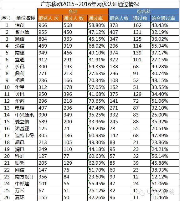 2、评审办法中包括经济部分,占40分;商务技术部分,占60分。在2月4日共26家单位参与经济标部分。(华为、大唐等公司未参加) 3、商务技术部分的网优考试通过情况:
