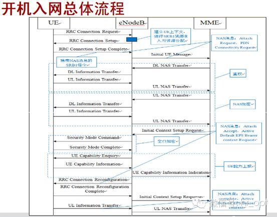 PhichDuration:PHICH持续时间模式,含义:该参数表示PHICH信道的持续时间的模式。 当PhichDuration配置为NORMAL时,PDCCH占用的OFDM符号数可以自适应调整;当PhichDuration配置为EXTENDED时,PDCCH占用的OFDM符号数只能为3,若带宽为1.4M,则PDCCH占用的OFDM符号数可取值为3或4。 界面取值范围:NORMAL(普通), EXTENDED(扩展), 建议值为:NORMAL(普通) PhichResource:PHICH资源, 含义:该参数表示小区PHICH信道的资源,对应协议中的参数Ng。 界面取值范围:ONE_SIXTH(1/6), HALF(1/2), ONE(1),TWO(2) 建议值:ONE(1) 对无线网络性能的影响:该参数配置较大时,占用控制信道资源较多,对上行调度的约束较小;配置较小时,占用控制信道资源较少,对上行调度的约束较大 37.接入信令流程?