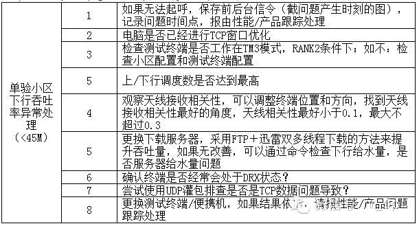 33.单验的速率达标值,单验速率上不去的因素? 目前宏站单验速率要求为:下行平均速率大于40M,统计时间为30秒;上行平均速率大于6M,统计时间为30秒; 室分:下行平均速率大于双流50M,单流30M.统计时间为60秒;上行平均速率大于15M,统计时间为60秒; 34.单验站点出现问题处理,例如下载、上传不达标?