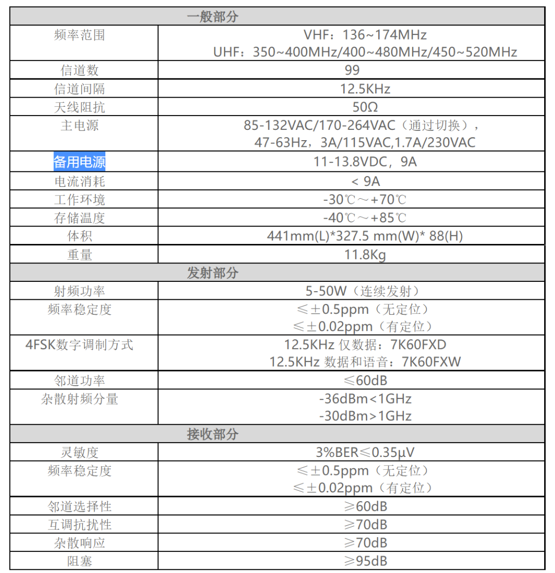 主页(http://www.pttcn.net):BF-TR8500 数字中继台 BF-TR8500数字中继台是一款面向机场码头、物流运输、大型酒店等行业及工商业市场的高性价比数字中继台。攻克通信盲区难点,充分满足涉及大区覆盖、跨区域覆盖及组网要求灵敏度高等无线通信应用群体的需求;同频同播与智能IP互联的应用进一步解决部分专业用户的痛点,如频率资源紧缺、跨区指挥调度等。 高功率全频设计 BF-TR8500数字中继台提供全频段设计和国内核准30W大发射功率,最大支持50W发射功率,用户可根据自身业务需求选择更优的发射功率,灵活满足国内外各行业的不同频点需求,帮助用户实现大幅度通讯覆盖范围提升。 高灵活IP互联(选配) BF-TR8500数字中继台支持无中心IP互联和可选适配智能IP互联系统。智能IP互联功能可通过IP网络,将多个BF-TR8500数字中继台构建成为一个更大范围的专业无线通信网络,灵活地对这些中转台进行分组、信道重新划分,从而能够将日常巡更和应急情况下的用户需求良好地结合在一起,作为SDC系统组网的网络节点,并接受调度中心统一指挥管理。 标准机架式结构 BF-TR8500数字中继台采用标准的19英寸2U结构,通过内置风扇,辅以整机采用金属外壳,为产品提供散热保障。用户可自行配置合适的双工器内置于机箱,无需外置占用额外空间,节省部署面积提高部署的灵活程度。 主备电源双保障 BF-TR8500数字中继台标配内置电源支持通过市电交流供电或直流供电(使用蓄电池或直流电源);当交流电源中断时,直流电源作为备份可使设备恢复正常工作,保证在应急时刻随时待命。 同频同播(选配) BF-TR8500数字中继台可选同频同播功能,作为同频同播的基站,仅需一组收发频率实现广范围大区域的同频覆盖效果,有效解决频率资源紧缺或业主对于单一频率实现大范围的广域覆盖需求。 卫星定位 BF-TR8500数字中继台中支持定制GPS/BDS单模或双模卫星定位功能(同频同播版本定位功能为标准配置,天线需另外选购),通过定位数据拓展应用。 高效率人性化操作 1、电池浮充 当中继台使用交流电工作时,直流端口可提供最大1A的浮充电流为蓄电池充电,保障设备在市电中断时候蓄电池能够发挥备份作用。 2、USB编程 设备支持通用的USB数据接口进行编程和维护,维护人员无需为找不到专用的编程线而耽误维护工作。 3、故障指示 当处于异常工作状态的时候,设备将会发出故障提示音,并在数码显示将会提示故障代码,便于维护人员快速确定故障原因,及时进行维护维修。 (中国集群通信网 | 责任编辑:李俊勇) |