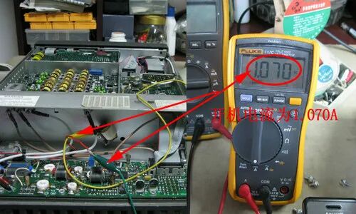 当对故障机进行测试时,发现不通,这说明,按PTT键没有接地,因此收发电路根本没有实现转换,难怪功放没有输出,如图: 仔细查找原因发现话筒座上的接地线(黑色)未接上,再查,发现该接话筒座的那一端被接在了音频电路板的压板螺丝下面。原来是人为接错了地方。重新接好,按PTT键,此时话筒座2脚到J5的8、18、22、30、32、34针处在通的状态了,如图: 想毕错误排除,应该恢复正常了,于是重新回到对功放J1、J2和J5的射频信号测试上来。经测试,结果如下:J1和J5输出波形与模机相同,但J2仍无波形输出,接上假负载测试,仍然无功率输出。检修到此很是高兴,说明正常的收发转换工作已经建立起来了,问题是J2为什么没有输出,是与功放有关还是仍与功放前级有关,需要进一步确认一下,遂将故障机的功放装到模机上试验,结果有接收,但仍无发射,顺便又将模机上的功放板装到故障机上试验,结果接收,发射均正常,最终把故障缩小到功放板上了。 对功放板故障的查找,先是测试了模机和故障机Q1~Q19等主要元件的在路直流电阻值,对比之后,没有发现大的出入,于是转向对主要元件的静态工作电压和发射工作电压的测试,如图: 表一:XF好、坏功放主要元件电压对比值