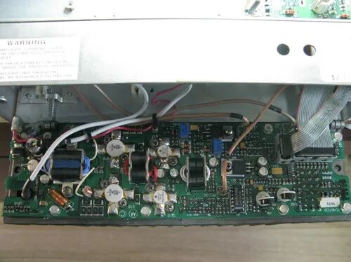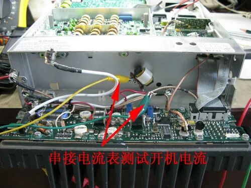 主页(http://www.pttcn.net):MOTOROLA MICOM-XF电台故障检修记 这部电台转到我这修理之前,已经机主本人拆解过。机主告知我,故障现象是:“能接收,但不能发射,在14M上有时有功率输出”。我也收藏有2部XF电台,但修理还是第一次。手里有本该机资料,还是两年前BG1ESX送我的。当我把机器拆开,看见满目的贴片元件时心里就有些发颤。当我打开图纸对照实际电路板时,我蒙了!原来这图纸与该机的实际电路完全不符!如:滤波板电路图上标明元件符号有12只继电器,但实际电路板上却没有一只继电器,咋一看图纸上的滤波电路板图与实际滤波电路板很相似,但仔细看却有区别。顿时,一股为难情绪油然而生……最终还是战胜自己,决定作为一次学习,试一把! 由于没有资料,决定用自己的一台XF机器作为模机,用对比测试的办法查找故障(为了方便测试,做了一根能够并联两台机器的电源线,将两部机器连接起来,用菊水维修电源供电),如图: 准备好后,按机主说的故障现象上机核实。 首先,在模机上要找到射频激励级到功放的所有射频电缆线,测试它们的正确状态,作为参考数据。打开机后的功放板,将其空挂在机身外。后面有3根射频线到达功放板(除去天线座的射频线),看标识是射频插口J1、射频插口J2和射频插口J5。分别断开J1,J2,J5射频插口,用示波器测试其输出波形。在SSB模式下,发射,吹哨,测试结果是J1有560mv左右幅度的电压波形输出,J2有3.6V左右幅度的正弦波输出,J5有31.6V左右幅度正弦波输出,记录下正确的模机数据及波形,开始测试故障机的数据和波形。经测试:J1、J2和J5均无波形输出,说明故障出在功放前级。 在对模机进行测试时,我注意到了一个现象,就是听不到收发转换时的继电器声音,而且查遍整机也没找到继电器。因此判断该机的收发转换执行机构不是靠继电器,而是靠无触点电路来完成。因为没有资料,也不知道这个转换电路设计在何处,因此干脆就从话筒的输入端查起。 首先,打开模机前面板进行测试,找到正确数据。按PTT键,话筒座2脚到J5的8、18、22、30、32、34针是通的,如图: