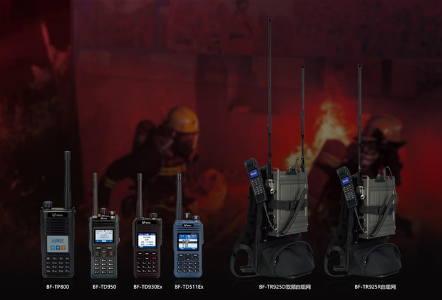 双频段通信覆盖,大范围快速组网 当现有网络(如有线链路、运营商网络)大面积瘫痪的情况下,北峰便携式自组网应急救援系统能够不依赖于基础网络设施,利用多台TR925D双频自组网设备形成双层应急自组织网络,两层网络可拆可联,既可以实现各分队内部的独立通信,也能实现分队间互联互通。 双频自组网设备的频段一工作在自组网模式保障各救援分队之间的互联,通信全面覆盖整个作战区;频段二工作在同频中继模式保障本分队内部通信,分队救援人员采用BF-TD910数字终端,实现实时语音、一键紧急报警、定位信息上报等功能,保障与一线扑救人员和后方指挥中心的互联互通。 TR925D便携式中继台整机采用军工标准工艺坚固耐用,面对长时间的高温救援任务,整机全铸铝机身利于散热持续工作,IP67防护等级可轻松应对高温酷暑、山高坡陡等各种恶劣条件。设备体积小巧、轻便易携、结构坚固、拆装灵活,通过固定站、车载、负背等形式组合,可随救援队伍连续辗转多个火场。