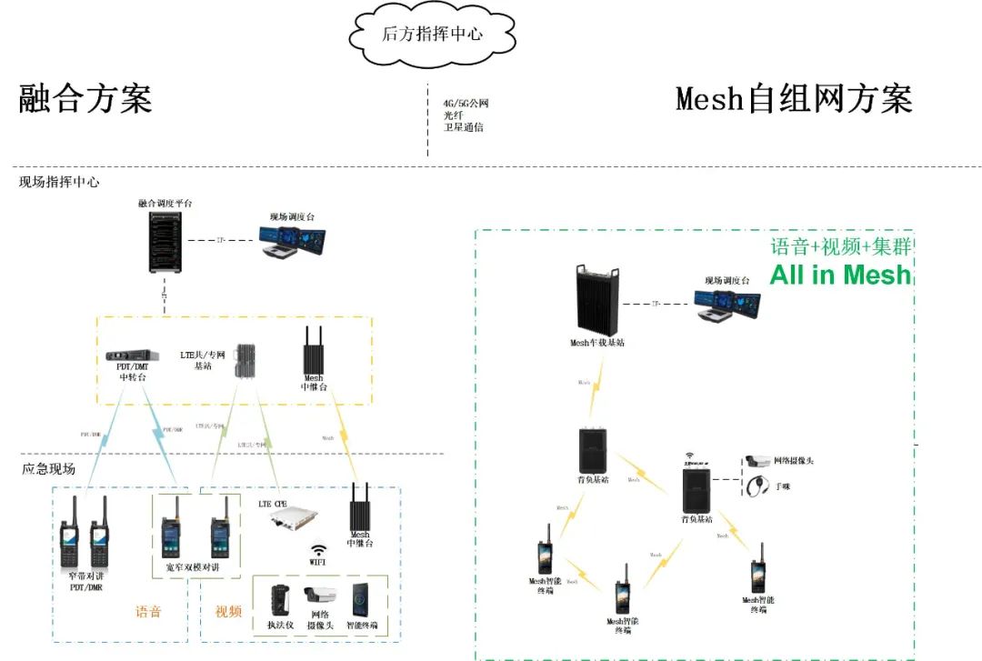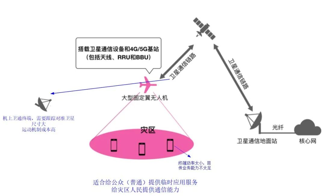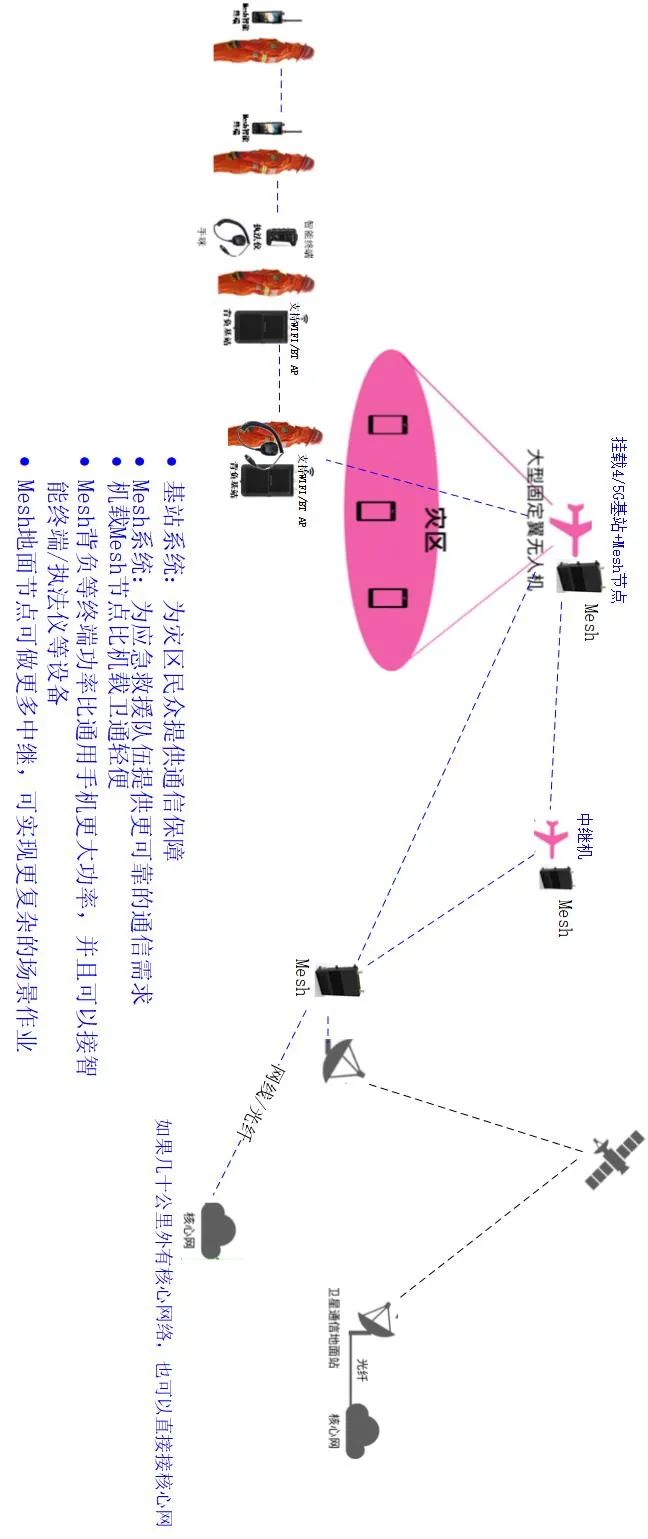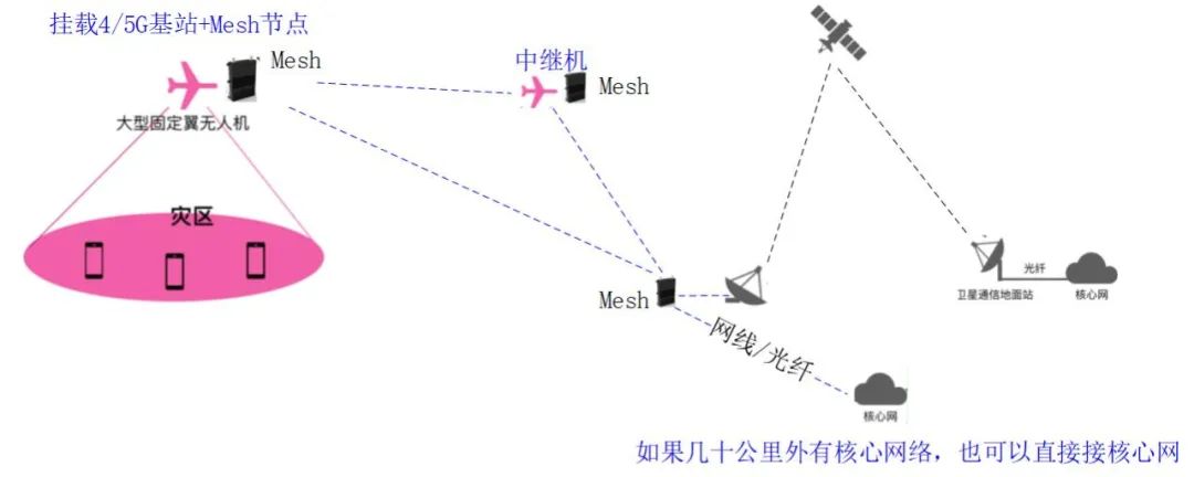 近日,河南多地发生严重汛情,引起全国人民的关心。特别是郑州等地遭受千年一遇特大暴雨,因灾情严重,通信基站大面积退服,多条通信光缆受损,通信受损,截至目前仍有多人失踪。其中巩义市米河镇一度发生通信阻断,受困群众无法与外界联系,给应援救灾工作带来重重困难。7月21日,国家应急管理部紧急调派翼龙-2H应急救灾型无人机,搭载中国移动的基站设备,从贵州安顺出发,连续出动两次,分别赶赴河南省巩义市米河镇以及郑州市中牟县阜外华中心血管病医院,滞空五小时为该地区提供应急通信网络保障,救援工作得以顺利展开。回想08年汶川地震,当时震区通信线路、大型通信设施全部遭到破坏,无论是有线通信还是无线通信都几乎瘫痪,手机拨叫不在服务区,固话打不通。为此,空军派出了15名空降兵勇士,携带2部海事卫星电话,冒险跳伞进入震区,为震区与外界送去沟通联系的信号以支持抗震救灾工作顺利展开。从过去的震灾到今天的水灾,我们可以发现通信保障在应急救援处于重中之中的地位。那么在无信号区域作业,如何给救援人员提供高效率、高水准、高稳定的应急通信支持呢?咱们来聊一聊应急通信保障背后的技术问题。从报道看,本次应急通信方案是4G/5G+空天地一体化的保障体系,由大型固定翼无人机、4G/5G基站设备(包括BBU、RRU和天线)、卫星通信系统组成。上图中,技术方案先进性自然没得说,咱就先不表了,整理下还存在的相关问题: 1. 尺寸问题,翼龙-2H搭载了卫星通信设备,由于卫星通信需要实时对准轨道卫星,再加上是军转民应用,所以翼龙-2H无人机尺寸大,其机长11米,翼展20.5米,高4.1米,从而限制了行业的应用范围;2. 带宽问题,由于终端的发射功率较小,无人机又位于3000-5000米的高度,导致回传的业务能力不足,从下面数据就可以看出,“累计接通用户2572个,产生流量1089.89M,单次最大接入用户648个”。说实话,就50平方公里的覆盖范围而言,这个数据并不算多(即便是农村地区),远不如一个普通的宏站。3.推广问题,翼龙-2H作为大国重器,最大起飞重量4200公斤,外挂载荷超过500公斤,目前全国机场数量很少,需要飞行1200公里驰援,实际作业时间为5小时,运维成本应该也不低,如果能大幅的降低带载能力和运维成本,才有利于这一技术的推广普及;MESH 自组网具有其去中心化无线宽带自组网,快速布网、移动性强的特点,可以作为卫星通信和公网基站的回传链路,如下图所示,如果几十公里外有核心网络,MESH设备也可以直接接入核心网络。也可以在灾区地面增加MESH自组网 的小系统,同机载MESH进行通信,MESH 网络之间由于时内部网,并不受卫星通信带宽出口的限制,如下图所示:▷ 无人机无需带载卫星通信系统,机载MESH节点比机载卫通更轻便,可以通过MESH组网实现核心网的接入,可由远端卫星接入或直接接入核心网;▷ MESH背负等终端功率比手机更大,可以增加业务的回传能力,从而增加系统的容量,达到增加覆盖的目的;▷ 机载MESH设备,可以同地面的MESH小系统互联,可以放更多的中继延深覆盖,比如室内和隧道内,从而实现更复杂的作业场景;▷ MESH自组网小系统本身集成了语音/视频/集群/WIFI/蓝牙/GPS,实现应急任务的同时,也可带载普通的用户终端和执法仪等,并且MESH小系统局域网的内网流量不受卫星通信带宽的限制。
