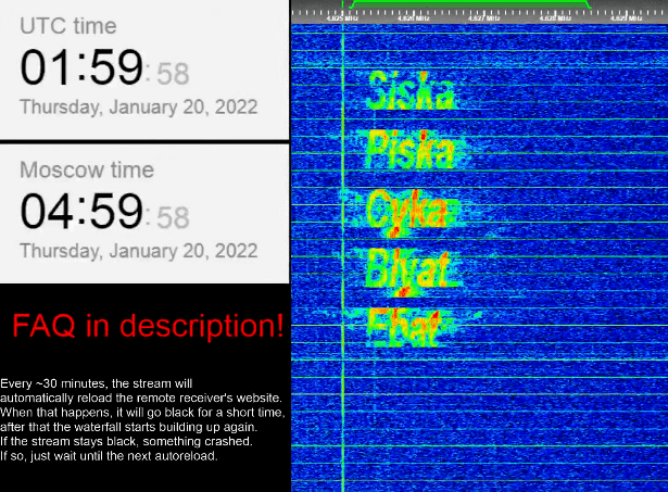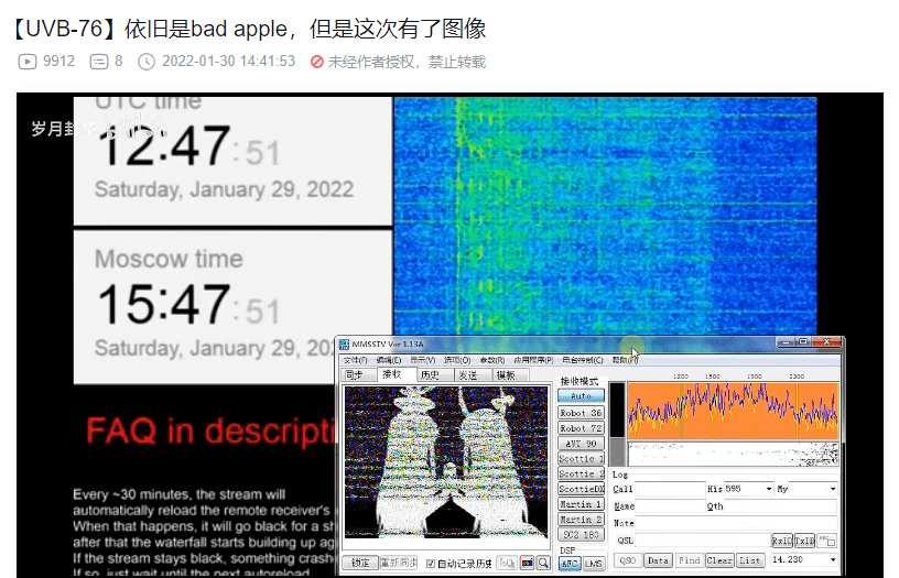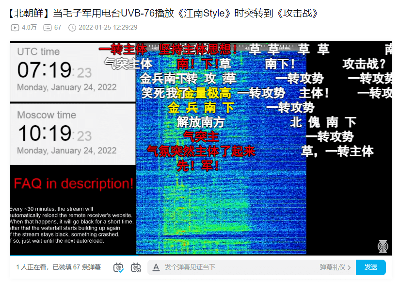 主页(http://www.pttcn.net):当来自苏联的军用“幽灵”电台被二次元占领 无线电与互联网并非水火不容。 在互联网带来的信息爆炸时代,无线电广播已经是个相当遥远的名词。不过,这一媒介仍然有着相当忠实的拥趸,他们便是业余无线电爱好者,简称Ham。 Ham会使用电台与其他Ham建立联系、交换信息、探讨技术,也会监听来自官方或非官方无线电台的各种信息。与此同时,Ham绝非跟不上时代的怪咖,他们能正常运用互联网媒介与社交媒体,其中的年轻一代也乐于接受当下的流行文化。 今年1月以来,就有这么一批人数与来源不明的Ham,劫持了一座俄罗斯军用电台的波段,播放流行音乐、梗曲、ACG歌曲,甚至赵本山的小品。 同行们将这批劫持者的表演如实地反映到互联网上,被国内外网友们积极扩散,也令这座原本只活在阴谋论中的军用电台,得到了前所未有的关注。 1 这座神秘的俄罗斯军用电台,一般被称作“UVB-76”。“UVB-76”是一座短波电台,频率为4625kHz(千赫兹),相传自1982年拥有首次收听记录。1990年以前,“UVB-76”会以每分钟约25次音调的频率,全天24小时播出一种高亢的嘀嘀声。 苏联解体后,“UVB-76”并入俄罗斯,播报的内容改为蜂鸣声。接下来的三十年里,蜂鸣声发生过一些微小的变化,例如持续时间变长、音调变深等,但大体上维持不变。于是,Ham们给这座电台起了个外号,叫“蜂鸣器”(The Buzzer)。 这种占用某个频段发射噪音的军用电台还有好几座,其中却只有“UVB-76”最为出名,大概有以下两个原因。 第一个原因是,“UVB-76”从冷战广播至今,表现过于活跃,让人们对它的用途产生数不尽的猜想。 这座电台并不总是不知疲倦地播报蜂鸣声,有时也会出现真人播报。1997年平安夜,监听“UVB-76”的Ham们第一次听到了这座电台发出的人声: “Ya UVB-76, Ya UVB-76. 180 08 B R O M A L 74 27 99 14. Boris, Roman, Olga, Mikhail, Anna, Larisa. 7 4 2 7 9 9 1 4.” 按照国际通行的规则,开头的“UVB-76”是电台自报家门。据短波无线电台研究网站Priyom.org所述,“UVB-76”本该写作“UZB-76”,是将俄文字母强行转录为英文导致的谬误,以讹传讹传到今天。 为了避免播报单一字母时因语音模糊、噪音太大造成混淆的情况,无线电通联习惯使用特定的词语指代字母,在英文里是一些单词,放到俄文则是人名。因此,那句广播里的六个俄文人名,是在重复前文的“BROMAL”。 部分俄文字母对应的人名列表 一些俄罗斯退伍军人指出,播报中的那个单词是一种命令,随着时间推移,单词指代的命令含义也在变化,例如“BROMAL”可能指进入全面战备状态,也可以指全面撤离。当然,没人知道这个“BROMAL”应该表达哪一种含义。 俄罗斯官方从未证实过这座电台的真实用途。目前的主流观点认为,“UVB-76”是为俄罗斯西部各军区服务的通信广播,用字母和数字播放只有拥有密码本的人才理解的信息。至于占着频段不走的蜂鸣声,是在阻止其他人使用相同的频率。 来自俄军某征兵办公室的一张小框纸 写着“UVB-76”的频率4625kHz 另一些猜想只能归为缺乏根据的阴谋论。最危言耸听的说法认为,“UVB-76”是苏联核武操控系统“死亡之手”的一部分,目前这个系统仍然生效,一旦俄罗斯领土受到核弹打击,“死手”系统无法收到持续的蜂鸣声信号,便会自动触发核反击。 截至2021年3月,俄罗斯共计拥有1456枚核弹头 2010年6月至9月,“UVB-76”的蜂鸣声多次停止,偶尔还传出敲门声与翻书声,相信阴谋论的网民神经兮兮地以为世界末日到了,结果却无事发生。此后“UVB-76”也会不定期停止播报蜂鸣声,“死手”阴谋论显然不攻自破。 频谱毫无生气,说明“UVB-76”处于静默状态 经Ham们查明,“UVB-76”因为俄罗斯部队编制调动而搬迁,才停止了一段时间的广播。位于莫斯科附近波瓦罗沃的故址,已被一部分Ham当成探险胜地,在废弃设施中找到的残存设备与一本发黄的运行日志,进一步实锤了“UVB-76”是军用通信电台的说法。 废弃地堡 运行日志 2 “UVB-76”受到瞩目的第二个原因是,这座电台频频受到外部因素的干扰,有着十分悠久的“整活”传统。 “UVB-76”是短波波段的无线电。短波可以被大气中的电离层反射或折射,以一定角度射入天空后,可以在地平线之外很远的地方反射回地球。基于这一特性,短波无线电常常用于远距通信,在卫星广播、有线广播及互联网普及前的冷战时期,被军方及民用事业所广泛使用。 短波传输也有一定的缺点。短波并不稳定,容易受到干扰,包括季节、气候、时间、太阳黑子等自然因素,以及某些人为因素的干扰。也正是因为这一缺点,认为“UVB-76”是“死手系统”稳定信号发射器的论调根本站不住脚。 “短波”也被称作“天波” 还是在2010年6月,一位爱沙尼亚的企业家兼Ham自行组建了一台中继器,创建了UVB-76.net网站,首次开放了从互联网收听“UVB-76”的渠道,带动了这座电台在世界各地的热度。该网站的访问量数以十万计,对UVB-76出现异样或受到外界干扰的记载也多了起来。 干扰电台的原理比写黑客代码要简单得多,需要的只是一台功率更强的发射器。这种干扰形式俗称“盖台”,干扰者把设备调到想要干扰的频段,以超大功率播出比原有电台信号更强的无线电,覆盖原来电台的信号,就能给人一种原电台正在播报其他内容的错觉。 2010年9月,有人听到“UVB-76”播放了柴可夫斯基的《天鹅湖》。《天鹅湖》在苏联及俄