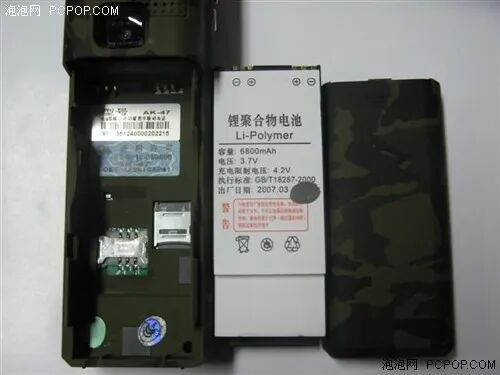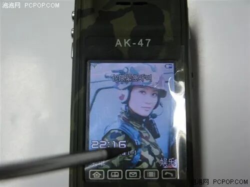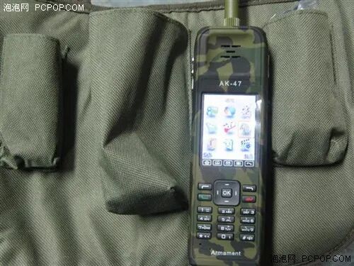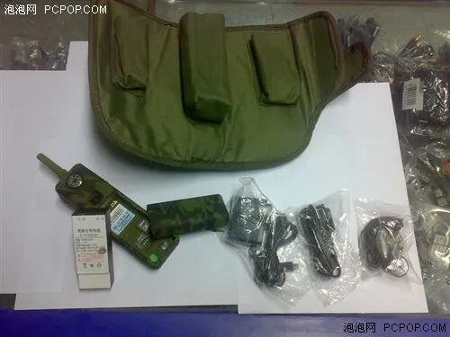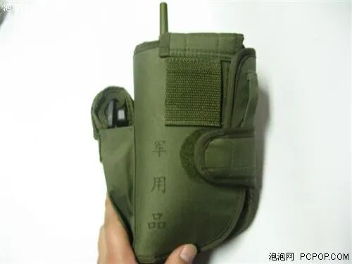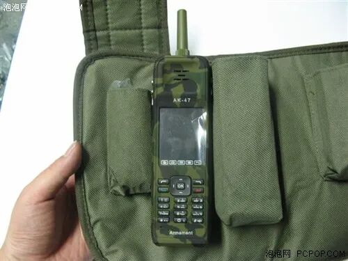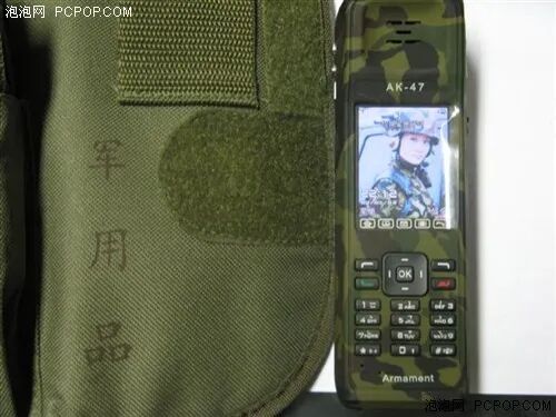 国产手机实在强,在经历了简单的仿造,贴牌后,国内的小厂商们也开始跟上了时代的步伐,不再简单的仿制烂造了。呵呵,不说了,先往下看吧。今天小编就给您带来一个好东东,军迷们这回有福了。现在先不说它是什么,我们暂且叫他为“绿色产品”吧。先给您看看它的外套。 想想这是啥?你是不是想到小兵张嘎中的盒子枪套了?呵呵,差不多了,再猜!注意最上边的绿色小突起,它像天线么?像么?你确定么?恭喜你答对了! 军绿包,再看到上边标准的红色五角星,是不是军迷们看到这就突然振奋起来了么?一直以来军迷们所能遇到的装备恐怕也只有各种衣服,模型,以及老久电台以及更多的陈旧设备可选吧?今天所要为您展示将是一款全新的,前所未有的产品。 到现在你可能已经想到了吧?它是不是军用通讯仪器?它是不是对讲机?告诉您吧,它不尽是对讲机,而且更是一部带有对讲功能的手机。现在清楚了?继续来看它的精彩介绍吧! 您是不是也在赞叹国产厂商们的设计能力了?小编不仅有一个疑问,其实这些厂商门往往规模很小,还能开发出这么诱人的机器,那么如果诺基亚推出一款同样的手机会是什么样呢?要卖多少钱呢?还了不说了,继续给大家介绍新机吧。 这么个大玩意,外型尺寸达到了47x150x47mm,而重量则高达255g(带电池)。这么个大家伙当然要放在专用的包包里了。 本来想在包装中继续找到说明书以及介绍类的纸张,可是遗憾的是,这一切只能我们自己通过自己的眼睛和脑袋琢磨了。它的名字应该是叫作:AK-47 Walkie Talkie仿真军用对讲机。它可以支持GSM网络通话,也可以进行无线点对讲,相必也会为您剩去了选择两个设备的困饶吧! 手机外型确实很独特,将人们印象中的大哥大形象与迷军用彩相结合,给人们联想到的不仅是视觉冲击,更多的是对设计者设计思路的赞叹,借助联想的一句广告词就是:“没有做不到,只有想不到”,我想这句话更应该激励我们民族工业的进步。连待机图片都做的那么有真对性,女兵。看到手写笔了么?不仅支持键盘,还可以全屏手机,与很多国产手机相同的软件。从屏幕感觉上来看应该是采用了65536色触摸屏幕,分辨率最少也在达到了128*160像素。根据经销商MM介绍,这款手机不仅具备了常规的电话功能,还有对讲机功能;而且MP3播放,MP4播放都不在话下;背后还支持了200万像素摄像头,这也算是目前主流的配置了,摄像当然没问题了。这么多的功能自然会有存储方面的问题出现,虽然不清楚机身内存容量,不过AK-47还支持了存储卡扩展,能想到的设计者看来都想到了。说了这么多的功能,那么做为一款“军用”手机电量上会不会拖后退呢?您就放心吧!看着这么大的块头,您还担心么?小编特别注意了一下电池容量,一时没敢相信自己眼睛,不过它确实是配置了6800毫安的锂离子电池!哎!真的无语了。小比电视直销天天在吹的CECT C1000的60天超长待机的记录,相比内置6800毫安容量的AK-47的三个月待机还算的了什么,虽然说这些只是理论值,但是打电话扛几十个小时应该不成问题。接着咱们再来看看配件吧!看了这么丰富的功能,这么强悍的电池容量,是不是看的过瘾?咱们再来看看配件吧,这也是一款“军机”所不能少的。费了很大劲才从小绿包里把他们都找到。其中提供了数据线、耳机、充电器、存储卡,可以说该有的配件全有了。