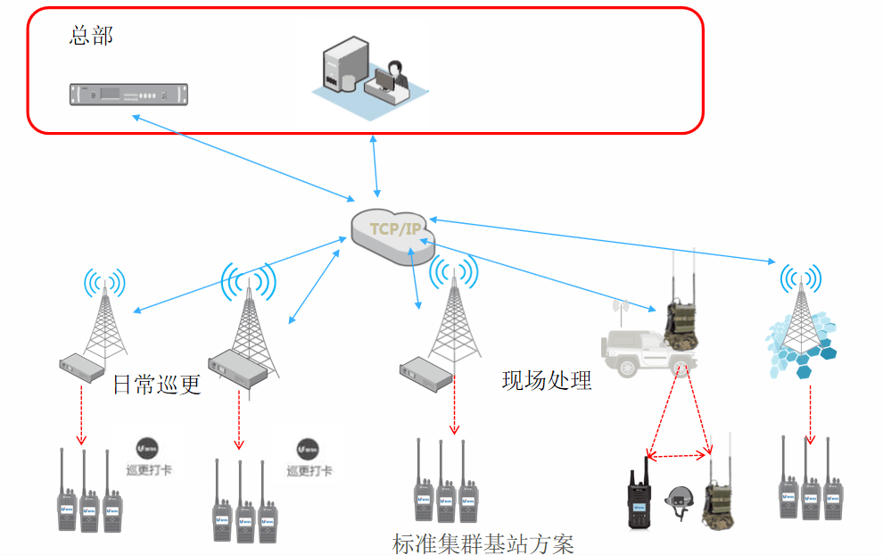 ![]() l 终端支持人员、巡查线路打卡切换功能(须终端支持RFID功能) l 巡检点支持灵活设置,支持无源巡查点、有源巡查点及虚拟巡查点 l 自定义巡查路线和巡查规则 l 配合多模POC和MESH链路支持现场音视频回传 l 支持远程系统管理和调度功能 l 支持定位信息、终端路径回溯、紧急一键报警等功能 优势亮点 多种巡更规则,适配不同巡更场景 系统具备在线巡更功能,可根据实际需求设置无源巡查点、有源巡查点及虚拟巡查点,定义巡查路线和巡查规则;通过具有RFID功能的终端,可以实现交接班及巡更打卡,通过读取巡查点位信息还可以实现室内人员定位。系统具有丰富的数据管理功能,支持单位、职位、用户、设备、终端、巡查等多类数据录入、管理。