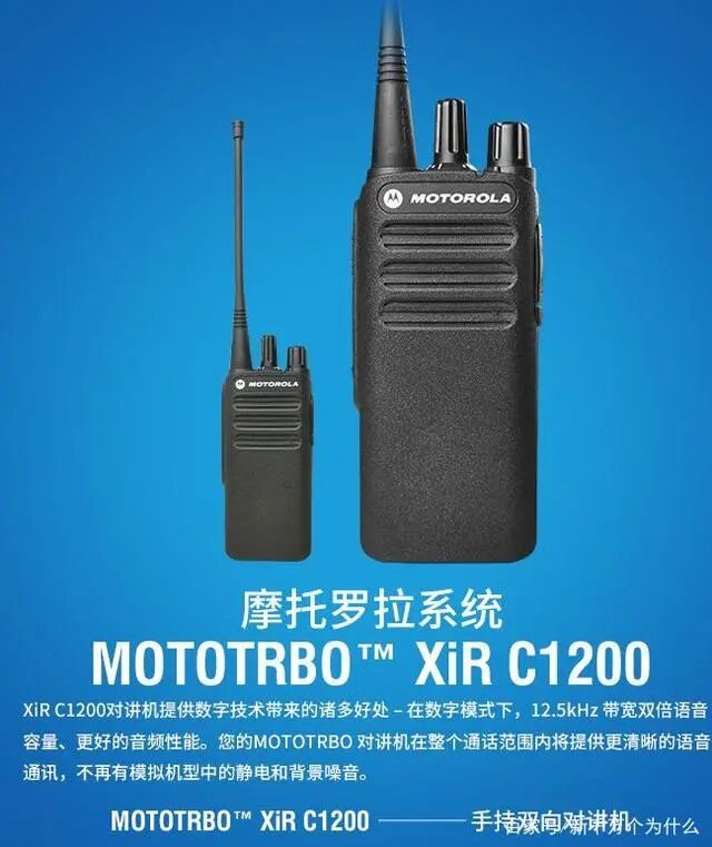 该尺寸比一般手机还要更迷你,外型则是可爱的方块模样,配上蓝、橘、粉等具画龙点睛效果的四种鲜艳色彩,可满足追求精美时尚的人群所需。当然其菜单现也绝不马虎,USB 的充电方式,出门在外亦可搭配移动电源使用,便利性十足。 5、YAESU 八重洲 VX-6R双频段防水手持对讲机价格:1648元 安心可靠的超强续航时间 选购工作用的无线电对讲机时,除了要注重轻便配戴以外,为应付长时间的通话需求,电量续航时间也是一大重点。而这款轻量对讲机不但具备支持 USB 充电的方便性,本身还拥有长达20小时的对讲时间及32小时的待机时间。 只要记得将电量充满,基本上每次使用都无须担心电量问题。再加上内置发射功率管可确保频道传输,能有效提高穿透力,不怕遇到墙壁等障碍物,相信定能成为、户外活动、工作上的好帮手。 4、摩托罗拉(Motorola)大功率C1200对讲机价格:1499元 模拟数字双模式,IP54等级防尘防水 若想要选用更专业的设计,以达到更远、更稳定的传讯距离,C1200是数一数二的好评型号,整体按照人体工程力学所设计,让拿握手感更上一层楼。