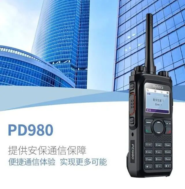 至于功能性方面,还附有语音播报功能,传讯音质饱满清楚,特别适合在传讯对象距离较远的情况下使用。 3、海能达(Hytera) PD980对讲机价格:5899元 适合户外休闲的酷炫选择 双工呼叫提供了新的通话方式,对讲机不再局限于传统的对讲,可实现终端之间的双向通话,在关键时刻提供更及时的沟通。实时反馈的语音在执行任务时能让指挥调度更加灵活。 在紧急情况下,通过PD980的中继功能可实现中继台的工作方式,可作为便携式微型中转台使用。在乡村、山区等无信号覆盖的地区中继传输功能可组建小型通信网络,扩大通信距离,实现特殊环境中的信号覆盖