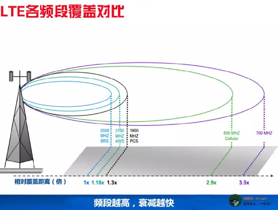 tdd频段分布 3GPP规定了TDD和FDD两种制式不同的频段,从LTE频谱分配来看,FDD频段普遍较低,TDD频段主要分布在高频段,网络的频谱越高覆盖能力越弱,要想知道频段对网络覆盖的影响有多大,看看下面的图吧!