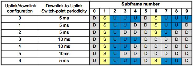 关于这个问题,借用一位网友(作者不详)的分析。 这个问题,是从理论上讨论两者在覆盖上的差异,如果TDD(上下行共10M)和FDD(上下行5M+5M)的带宽相同、发生功率相同、接收模式配置相同,那么FDD和TDD异系统不应该有覆盖上的差别。但在LTE网络规划上通常要考虑这个覆盖差异。 高通曾发表报告说TDD覆盖仅为FDD的80%,并解释原因,在发射功率相同的情况下,TDD上行链路存在发射功率的时间(一个10ms帧中)要比FDD时间短。通俗点解释应该是在FDD模式下,上下行频率分开,所以上行链路UE可连续占用10ms发射功率,而在TDD模式,时分复用相同频率,所以上行链路UE可发射功率的时长不足5ms,这与与TDD帧结构相关。如下图,当采用配置模式1时,上下行可用子帧比例为4:4,在一个10ms中,上行链路存在发射功率的子帧为4个,即为4ms,相当于上行占用4/10M带宽。而在FDD模式连续占用10ms上行带宽(5M),所以说TDD上行吞吐量相当于FDD的 80%。