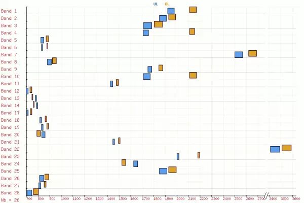 从理论上计算FDD与TDD上行容量相差20%左右,这个值相当于在小区覆盖边缘且单用户时计算出来的。在网络规划过程中,需要考虑这个因素,设置小区边缘最大SINR和实际需求的SINR余量,这样20%的容量差异相当于SINR降低3db,其他条件不变的情况下,链路预算后的小区半径TDD要小区 FDD,所以说LTE TDD的覆盖要差与LTE FDD. 不过,要我说,这点理论上的差异也算不了什么,关键的问题还是在频段的分配上。来看看lte的频段分配情况。