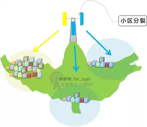 这个时候,我们就可以用功分器将某个小区的信号分成两路来覆盖两个不同的区域。 在上图中,蓝色小区被分割成两路信号,覆盖两个不同位置的村庄。需要指出的是,那个信号没有被分割的小区(黄色小区)应该覆盖人口最为密集的那个村庄,因为该区域话务最高。