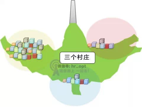 那么,接下来的问题是,为什么要用功分器?在哪里使用功分器? 想象一下,这里有三个村庄,刚好三个村庄的中间有一座小山。现在,我们为了覆盖三个村庄,要在这座小山上安装一个基站。