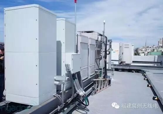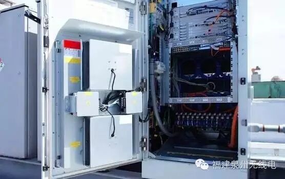 上图中,最左边的机柜(开着门的)里面是基站主设备,中间机柜里面是备用电池系统(当基站停电时,可以维持5-8小时的供电),最右边的是回程光纤连接设备。 注意:这个基站是露天的,一般情况下基站都是室内的,这个站有点任性!