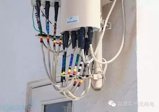 天线和基站之间通过馈线连接,这是天线端的馈线连接处,外面包上厚厚一层黑胶布是为了防水,一旦馈线进了水,会影响通话质量的。
