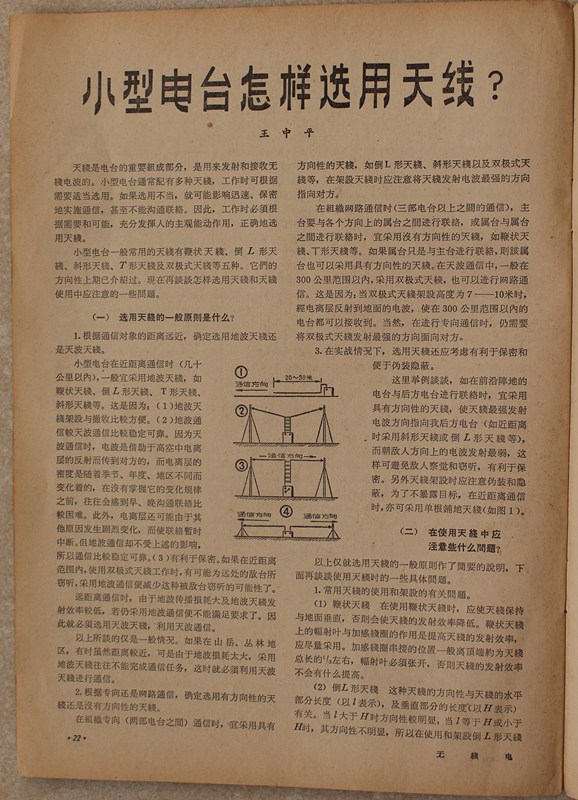 50年前玩无线电的人都会看的杂志:《无线电》杂志 当时的条件很艰苦,学校腾出1间小仓库当教室,训练器材只有老师自己做的小电键和1台组装的电子管振荡器,学生的电键是用木头做底座,4根木螺丝固定在桌子上。 训练从最基础的一点一划读电码开始,抄收速度由开始的每分钟30个电码逐渐加快,年龄小接受能力强,很快就能抄收80到90个电码。发报训练就没有这么顺利了,远比练收报苦,小手的中指磨起了泡,继而又掉了皮露出了肉,疼得钻心。渐渐有的同学坚持不住了,参加训练的越来越少,由开始的20多个逐渐减少,最后只剩下5、6个“铁杆儿”。