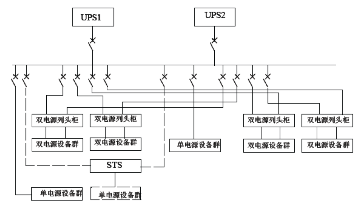 UPS并联冗余工作方式 两台UPS并联的必要条件时同频、同相、等幅,因此必须有一个并联控制器,它主要完成同步锁相、均流及并联管理等功能。 UPS并联的目的是为了大大提高供电系统的可靠性,它往往使用在特别重要的场合,如通信、卫星发射中心、石油、化工、电力、钢铁、金融和广播电视等系统中,这些系统停电会造成巨大的经济损失,因此要求供电系统的绝对可靠。 其运行模式是:两台UPS均正常时,各承担50%的负载;当其中某一台UPS故障,由另外一台承担100%的负载;当两台UPS均故障时,市电经静态旁路开关直接对负载供电。
