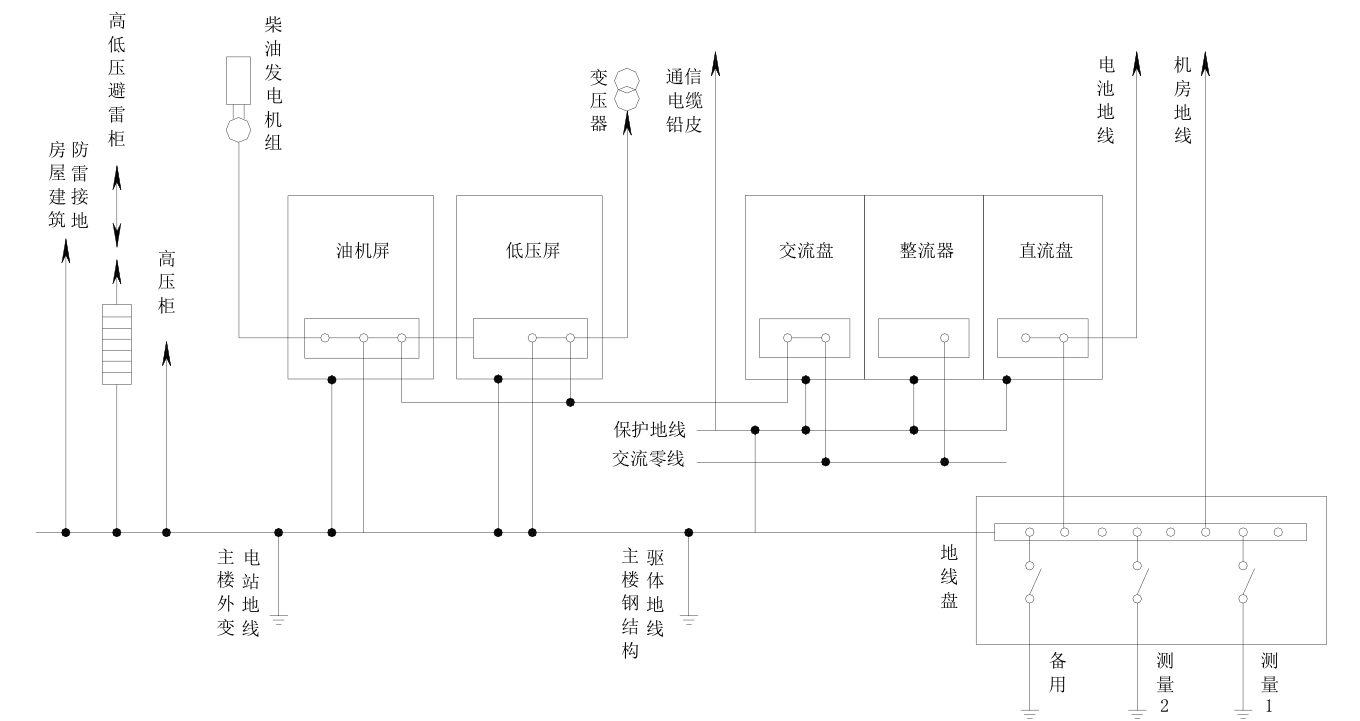 主页(http://www.pttcn.net):经典分享:通信电源知识全集(16) 雷电防护的基本原则 确保人身安全 执行规范综合防护 安全性、可靠性并重 合理投资 接地系统分类 根据规范要求,交直流电源系统和建筑物防雷等都要求接地,各种接地的分类一般可分为工作接地、保护接地和防雷接地。工作接地又分为直流工作接地和交流工作接地。防雷接地也称过电压保护接地。 直流工作接地:也可称为电信接地或功能接地。最常见的有开关电源和蓄电池正极接地。 交流工作接地:在交流电力系统中,运行需要的接地(如中性点接地等)称为交流工作接地。最常见的有三相四线中的零线接地。 保护接地:保护接地的作用是防止人身和设备遭受危险电压的接触和破坏,以保护人身和设备的安全。 接地系统图
