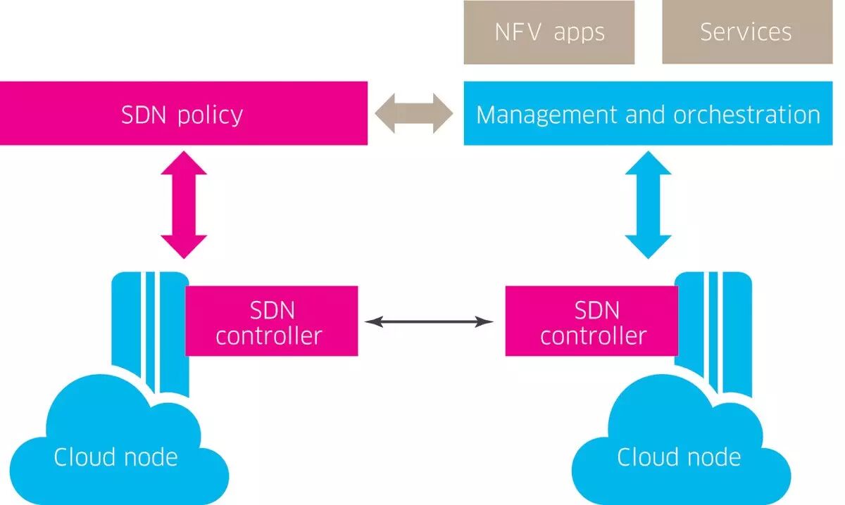 此外,运营商需要将分部式数据中心和网络作为一个单一的虚拟云来管理。这使得运维人员可关联来自各种输入源的事件以便实时地对整个云平台进行分析和监控,进而提升决策效率。 2. 云节点的自动化 相对于由集中式数据中心组成的集中式云,NFV的分布式架构意味着数据中心和PoP点一定会更频繁的被添加和变更。在整个覆盖区域,可能会有多达数以千计的云节点,各节点提供计算、存储和网络资源。 为获得NFV在运维成本上的优势,运营商需要部署高性价比、大量生产的硬件。通过这一方式,不必再对单一的组件进行维修,而是让其在云节点被替换时退出服务。 要保持较低的运维成本,就需要高度自动化和预先配置好的云节点。普通的云节点需要一周或更长时间来安装,而NFV云节点仅用数小时即可完成引导和配置,且大部分工作都可在远端进行。 3. 应用的生命周期管理自动化 NFV应用的纯软件特性带来更高效的生命周期管理过程。在最佳情况下,仅需点击按键,即可将新业务部署在指定的位置,而无需采购和安装新设备。这要求对应用组件进行描述并指定在生命周期各阶段如何执行,包括:上线、部署、监控、扩展、修复、升级/打补丁、下线。 运营商应用通常包含多个虚拟机、存储卷和网络配置。这意味着运营商需要看到这些组件如何组合起来形成应用;什么应用在什么地点运行,以及它们用了多少资源,甚至看到独立的虚拟机。 要达到这一目标,云管理系统必须将应用看做是一系列VNF形成的集合。例如,IMS应用可能包含10种甚至更多不同类型的VNF,每一个都有各自的部署、扩展和维护规则。 今天,为新业务部署网元和配置所需的网络连接是两套独立的流程,由不同的团队完成。在NFV中,由于大量的数据中心和PoP点的存在,这些流程更加复杂。复杂性还来自新增或移除位置时带来的频繁变更。这使得传统的手工部署模式几乎不可能实施。 在部署网络应用及分配和配置必要的计算、存储和网络资源时,理想的NFV平台使其成为一个整体的自动化的流程,耗时几分钟而非数周便可完成。这一流程会参考应用描述符中给出的应用策略和需求。 4. 网络自动化 NFV应用需要在LAN和WAN层面嵌入到网络,才能实现所期望的性能和可用性。要实现这一目标,诸如虚拟化IMS和虚拟化EPC等NFV应用通常需要复杂的网络架构以不同方式来处理媒体、信令和管理流量。 相对于物理实体,VNF还具备更多的动态特性。它们的部署和移除都是按需的,扩展也是与流量变化相匹配的。此外,物理网络功能中刀片间的通信路径被映射为NFV中虚拟机间的通信路径。这些路径是NFV架构必须提供的。 要实现这一目标,需要可快速配置且灵活的网络抽象,这是传统路由器和交换机网络难以提供的。NFV平台应能与SDN结合,后者提供增强的可编程能力。NFV与SDN相结合能够捕捉到VNF的网络需求并按需自动创建网络能力(图2)。这可以帮助运营商解决当前网络劳动密集所带来的问题和易错配的配置流程。