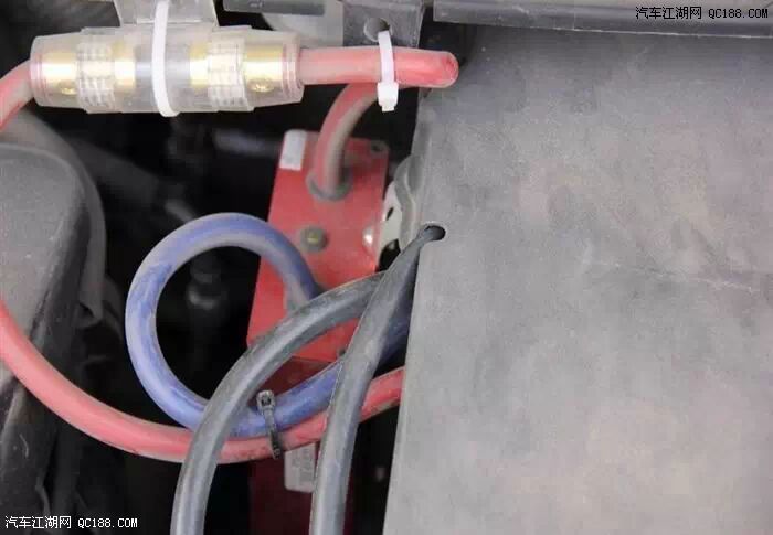 好了准备接电源,我将电源线从车内导入车头,并穿入一根热水器软管内,主要是考虑安全。。