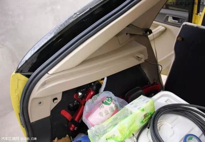 拆除车后盖面板,主要为天线布线所准备,不过(下图左面)这块面板不用拆。。。。。囧。
