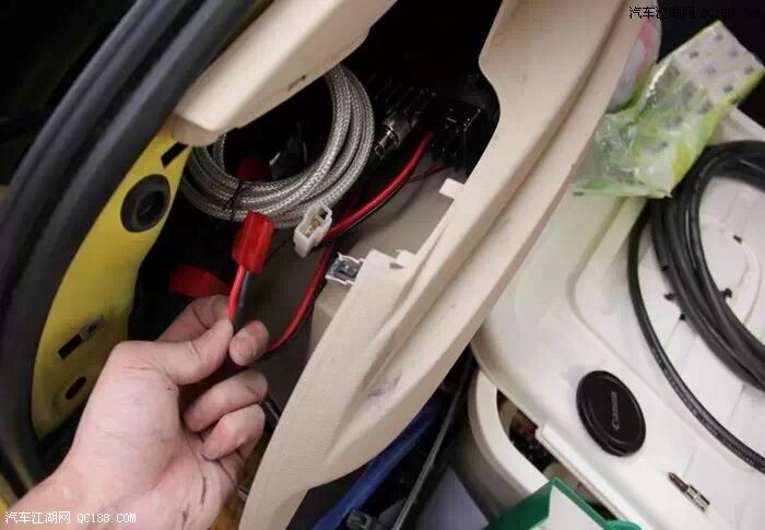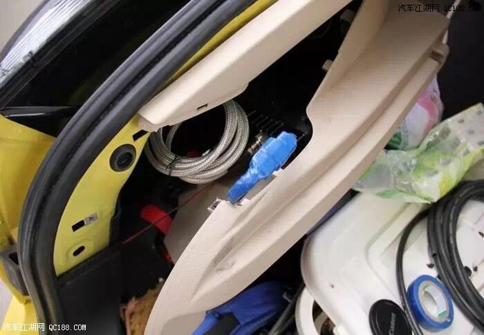 扩音器,从驾驶员左侧下门边将线拉到主机位置(大概怎么布线要想好啊)