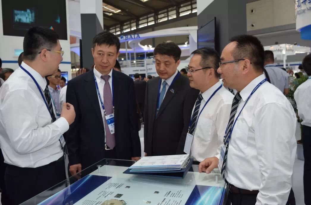 总装电子信息基础部王兆耀部长(左二)参观海格通信展台