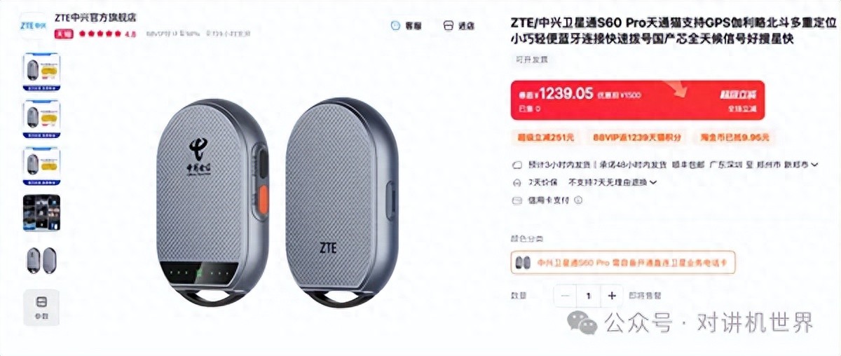 主页(http://www.pttcn.net):中兴新品,不用换手机,即可让iPhone、安卓等手机实现卫星通信 中兴官方发文介绍,中兴卫星通S60 Pro正式上市,目前已上架天猫平台,售价1239元。 中兴卫星通S60 Pro采用外接终端+APP联动的方案:无需更换现有手机,只需通过蓝牙连接设备,配合中兴星联APP,即可让iPhone、安卓等主流机型实现卫星通信。