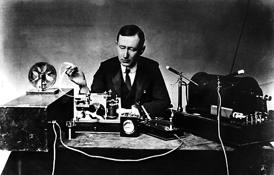 1899年3月27日,无线电之父马可尼在接收无线电信号。 ▋4.传递比赛胜负,无线电通信第一次实际应用 然而,一些年轻的发明家,思想上没有那么多条条框框。他们很快投入到利用电磁波进行无线通信的探索之中。年轻的意大利发明家马可尼是其中的佼佼者。 赫兹发现电磁波的那年,马可尼才14岁。大学读书期间,受到他的老师奥古斯特·里奇的影响,马可尼对无线电进行了大胆的研究。马可尼不受权威偏见的束缚,立志把电磁波用于通信。他曾说:“当我利用赫兹波开始做第一批实验时,我简直不能想象,一些著名的科学家竟忽略了应用这些理论。” 马可尼在他父母的别墅顶层建立起无线电收发实验装置,专心地做起实验来。1894年的一天,马可尼把母亲请到实验室来,小长桌是他的实验台,上面摆着一台简陋的收发报装置。马可尼一按电钮,就从楼下的客厅里传来一阵铃声,而楼上和楼下并没有导线相连。这就是马可尼第一次实现无线电信号传送的情景。 为了把通信距离进一步扩大,马可尼不断开动脑筋。他将赫兹振荡器悬挂在高柱子上,并且在一端连接一块金属板做天线,在另一端连接一埋入地下的金属板做地线,他根据观察,得出了天线越高,装置的灵敏度也越高的结论。这样,早期的无线电天线就出现了。1895年夏天,马可尼在别墅的三楼实验室和2.7公里远处的山丘之间成功地实现了无线电报通信。 1896年,22岁的马可尼告别故乡,偕同父亲到达英国。在英国邮政部门的支持和帮助下,马可尼进行了多次无线电收发表演,还在公开场合做了10公里至20公里的无线电报通信演示,并获得了成功。 1897年,在伦敦成立了由英国政府代办的马可尼无线电报公司,马可尼亲自兼任董事长。有了资金的支持,马可尼开始把无线电通信向商业化发展。1898年,英国举行游艇赛,终点是距海岸20英里的海上。《都柏林快报》特聘马可尼用无线电传递消息,游艇一到终点,他便通过无线电波,使岸上的人们立即知道胜负结果,观众为之欣喜若狂。可以说,这是无线电通信的第一次实际应用。 1899年3月3日发生的意外事故,使人们认识到无线电通信的重要性。那天,一艘名为“东谷德文”的灯船不幸被一艘轮船撞毁下沉。呼救的无线电码向各邻近海岸和海港频频飞去。于是,救生艇纷纷奔赴出事地点,遇险的船员全部获救。 1899年10月,马可尼在怀特岛上播发了第一封收费电报。电码飞越英国和法国之间的英吉利海峡,通信距离达45公里。后来人们将这作为无线电诞生的标志。 事实上,无线电的发明者并不是马可尼一人。比如俄国同样只有二十几岁的波波夫,差不多和马可尼同时,也独立地完成了无线电报通信的发明。而对于无线电通信技术的贡献,更是集中了那个时代很多人的智慧。 ▋5.直线传播的电磁波为何能绕过地球? 当时一些有名的学者断言,马可尼的跨越英吉利海峡的无线电报已接近无线电通信的极限距离了。理由是,电磁波和光线一样是直线传播的,而地球是圆的。根据地球的直径和天线高度,可以计算出无线电波只能在60公里左右的直视距离内传播。 然而,作为发明家的马可尼,总是愿意把实践放在理论的前面。1901年12月12日,他亲自前往北美洲纽芬兰海岸的圣约翰城,等待接收他的助手从英国康沃尔发射台使用60米高天线发射的无线电波。马可尼把接收天线挂在风筝上升入121米的高空。突然,耳机中传来了三响微弱而清晰的“滴答”声,这正是他们事先约定的字母“S”的电码。无线电波越过了3600公里的大西洋,马可尼用实验证明了无线电远距离通信的可能性。 但是,很长一段时期里,人们对无线电波为何能绕过地球的曲面一直没有理论上的认识。1902年,一位英国物理学家和一位美国电气工程师曾大胆推测,马可尼的无线电信号可能是被高层大气层中一个带电粒子层从天上反射回来传播到北美洲的,他们还提出,这个带电粒子层是由于太阳紫外线对大气层中空气的电离作用而形成的。这是一个难能可贵的猜想,但当时并没有引起足够的重视。 那时候,人们普遍认为长波(波长为1000米至10000米的无线电波)是进行远距离无线电通信的唯一波段。因为人们发现,波长越长,波强度随距离的衰减就越小。然而,波长越长,发射和接收天线的几何尺寸越大,通信用的天线装置也越来越庞大和笨重。 然而在1921年,欧洲和美国的一些无线电爱好者相继发现,功率只有几十瓦的简易短波无线电台所发射的信号,却能被千里以外的业余电台接收到。有一次,意大利罗马城郊发生了一场大火,一台功率很小的业余短波电台发出了求救信号,但出乎意料,遥远的丹麦哥本哈根的一些接收机都收到了这个求救信号。 新发现促使更多人进行类似的试验,结果证明短波比长波更适合于远距离通信。前人关于大气中带电粒子层的猜想再次引起了人们的重视。1925年,英国物理学家阿普尔顿向高空连续发射无线电波,用实验证明了大气层中带电粒子层的存在,并证实它具有反射无线电波的能力。这时人们才明白,长波主要是沿着地面传播的,射向空中的长波大部分被电离层所吸收。而短波的传输特性刚好和长波相反,沿地面的传输衰减很严重,但电离层却将大部分短波反射回来,这就是短波能实现远距离无线电通信的秘密。 ▋6.小小电子管,让无线电话和广播具有生命力 20世纪的第一个十年间,无线电通信并未获得普及应用,